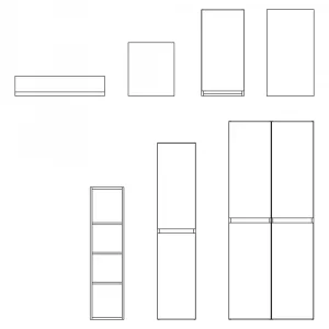 The collection includes a variety of formats to adapt to different layout requirements. From 40×40 cm wall-mounted cube units to single-door hanging units in 35×70 cm and 40×70 cm sizes, BASIC offers flexibility for bathrooms of different sizes. The range is completed with shelves available in multiple lengths (50, 60, 70, 80, 90, 100, and 120 cm), a 110 cm high open vertical shelving unit, and storage columns with 2 doors (160 cm high) and 4 doors (185 cm high), expanding storage possibilities for residential and commercial projects.